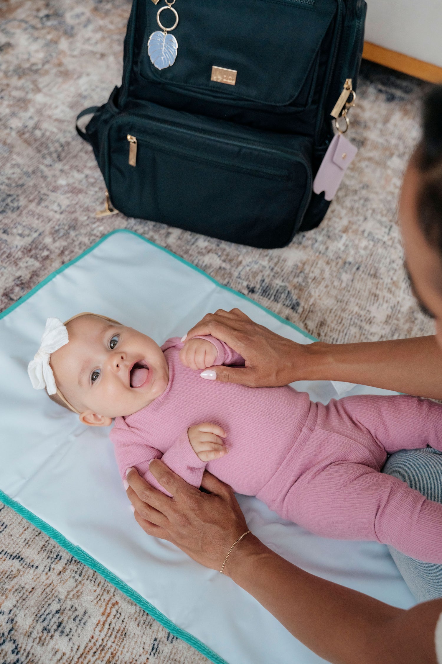 Included in the Koa Backpack is an oversized changing mat that accommodates your child from newborn blowouts all the way through toddler potty training. No more frustrating tiny mats where you need to choose between sliding it under baby's head or bottom!